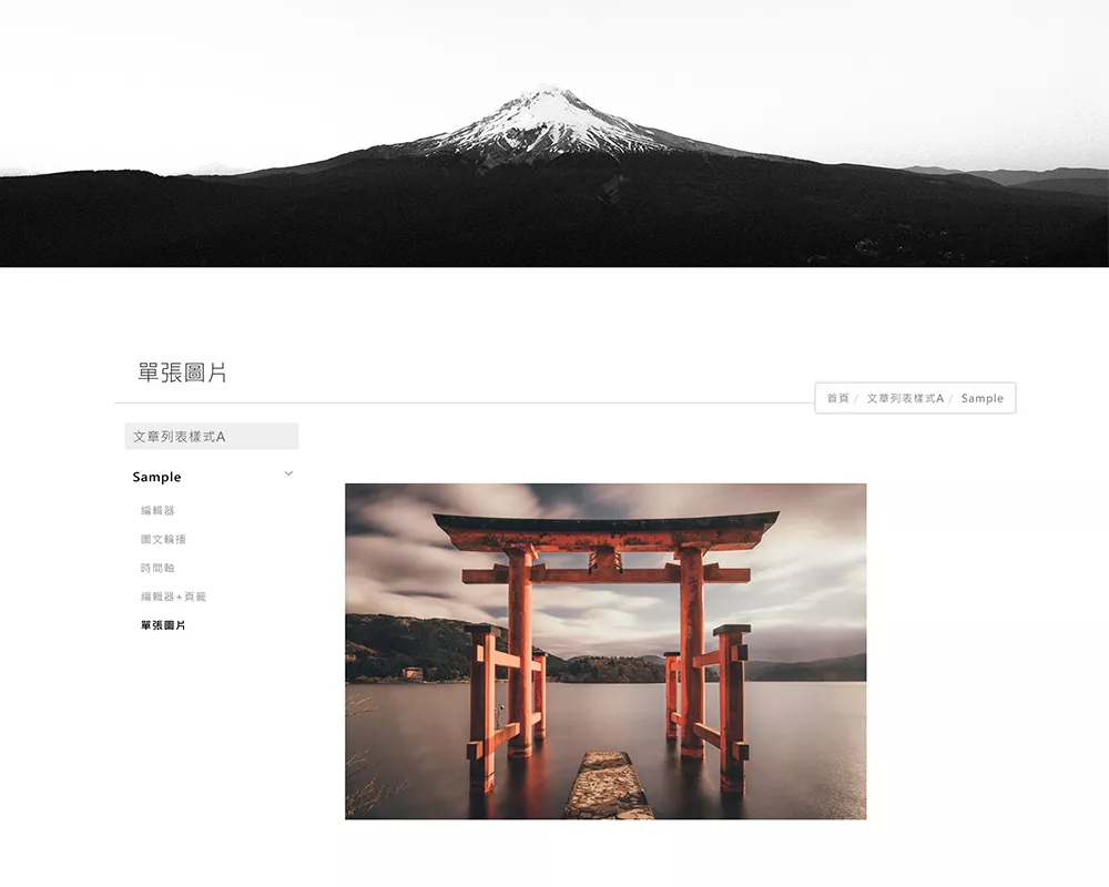 ※ 最上方山圖為內頁Banner大圖位置示意,後續可自行放置、更換