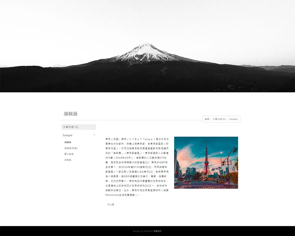 ※ 最上方山圖為內頁Banner大圖位置示意,後續可自行放置、更換